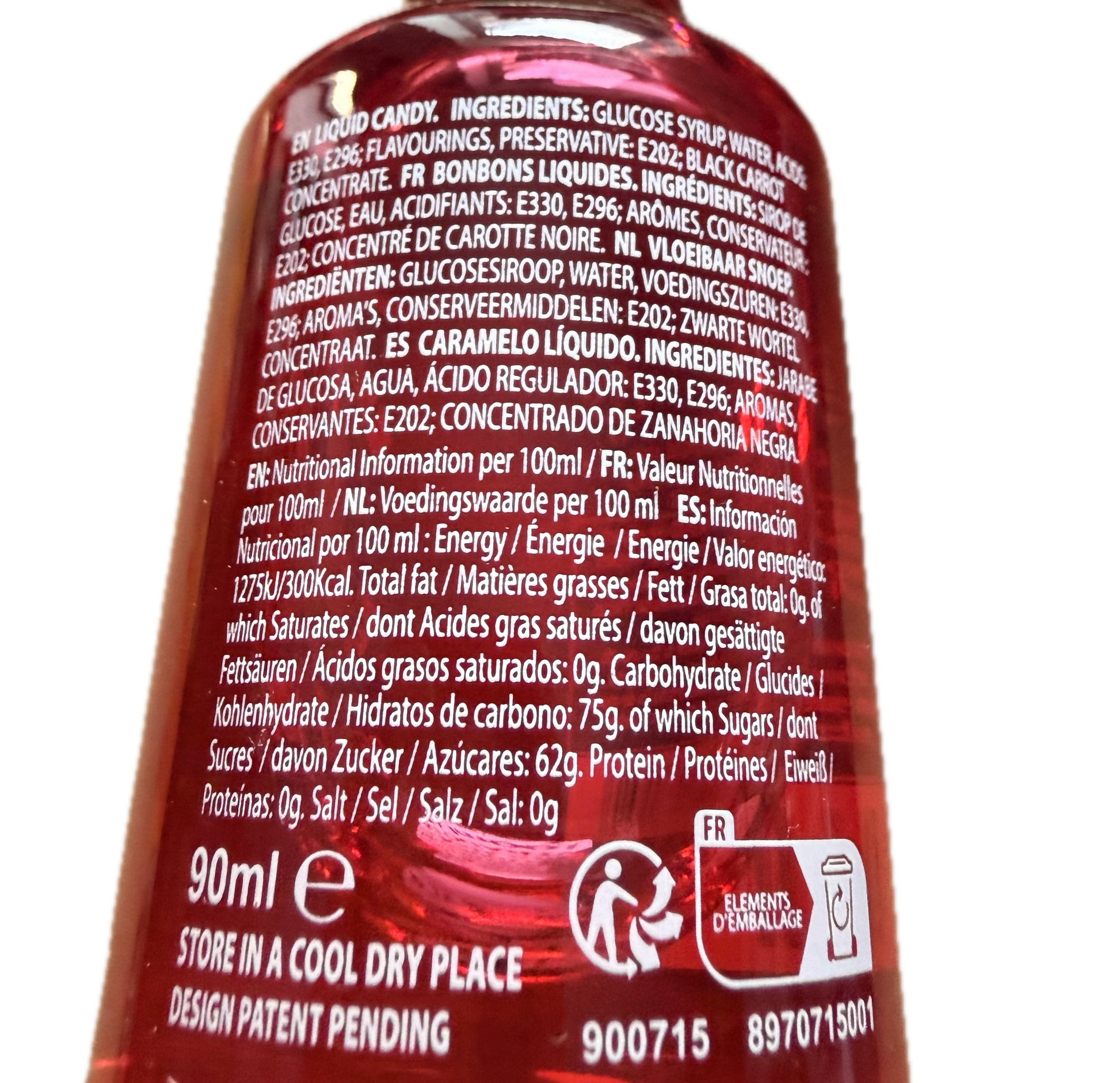 Glucose Syrup, Water, Acids: E330, E296, Flavourings, Preservatives: E202; Black Carrot Concentrate.